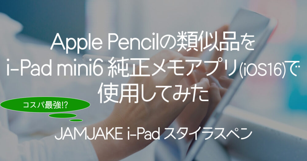 その中でもJAMJAKE iPad Stylus Penを購入し約半年ほど使用しましたが、はっきり言ってメモ中心であれば機能は必要十分、コスパは最強と言えます。